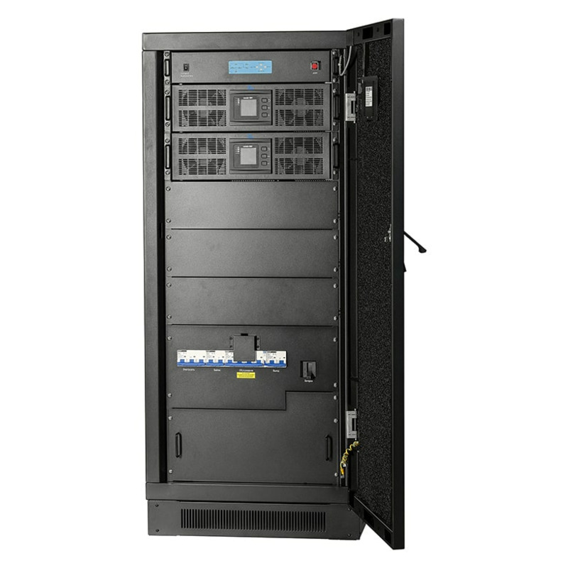 Онлайн ИБП СИП380А50МД14.10-31 двойного преобразования, с трехфазным входом и однофазным выходом, полной мощностью 50 кВА. Предустановлено 5 силовых модулей мощностью 10 кВА. Выходной коэффициент мощности до 1,0. Установка до 5 силовых или батарейных модулей высотой 3U. Параллельная работа до четырех ИБП. Совместимость с генераторными установками и высокая перегрузочная способность.