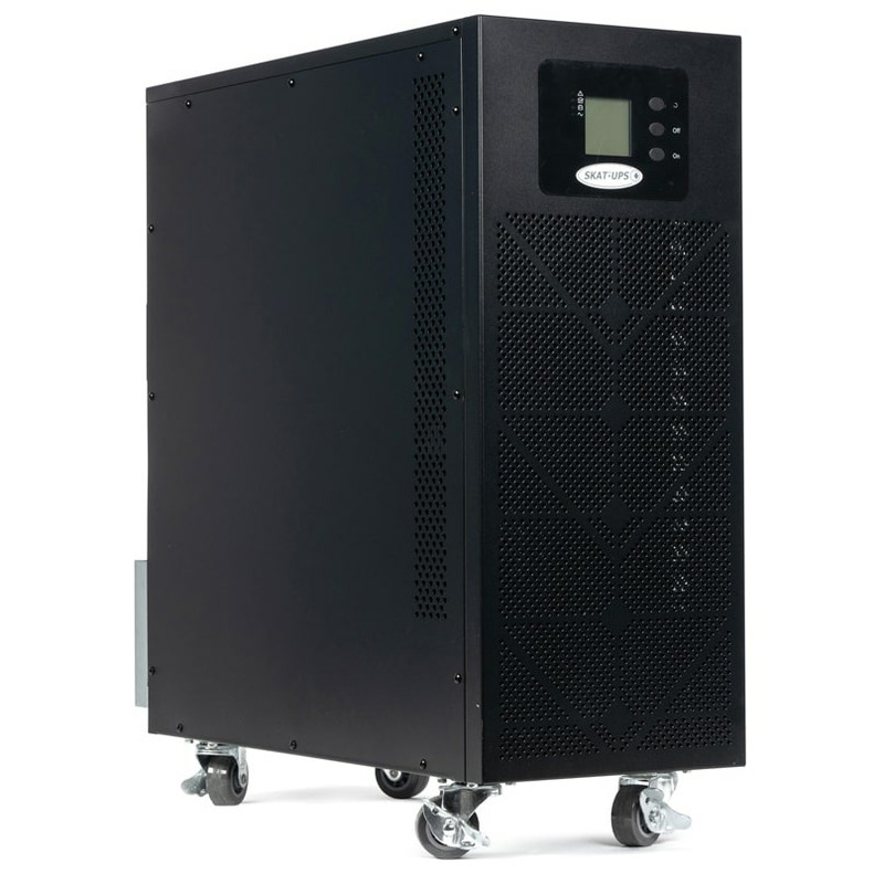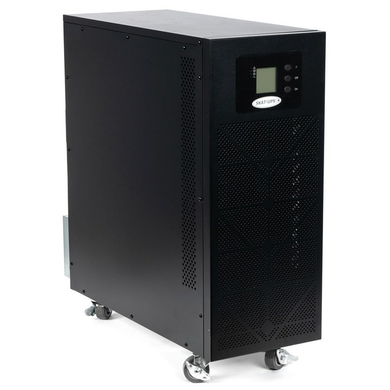 SKAT-UPS 15-3/3 представляет собой современный экономичный трехфазный источник бесперебойного питания с системой двойного преобразования напряжения, цифровым управлением, функциями защиты и контроля. ИБП обеспечивает безопасную и надежную защиту оборудования от некачественной электросети, питая подключенные к его выходу устройства стабилизированным трехфазным напряжением. При отсутствии напряжения сетевого электропитания SKAT-UPS 15-3/3 использует электроэнергию, запасенную в аккумуляторных батареях.