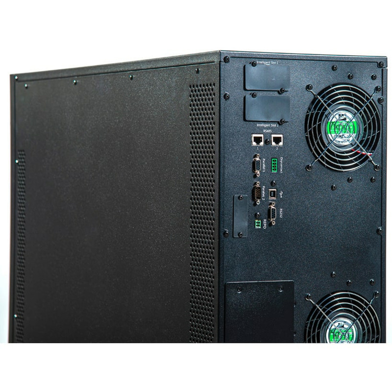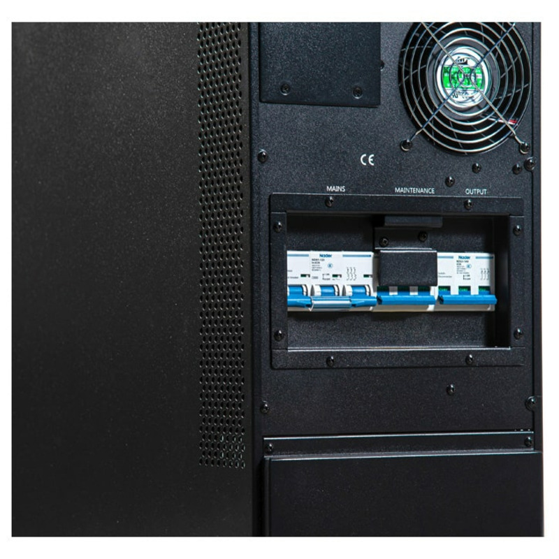 Источник рассчитан на круглосуточную эксплуатацию в режиме три фазы на входе / три фазы на выходе и обеспечивает питание нагрузки общей потребляемой мощностью до 40000 ВА переменным током. Напряжение питания 380/400/415 В выбирается пользователем.