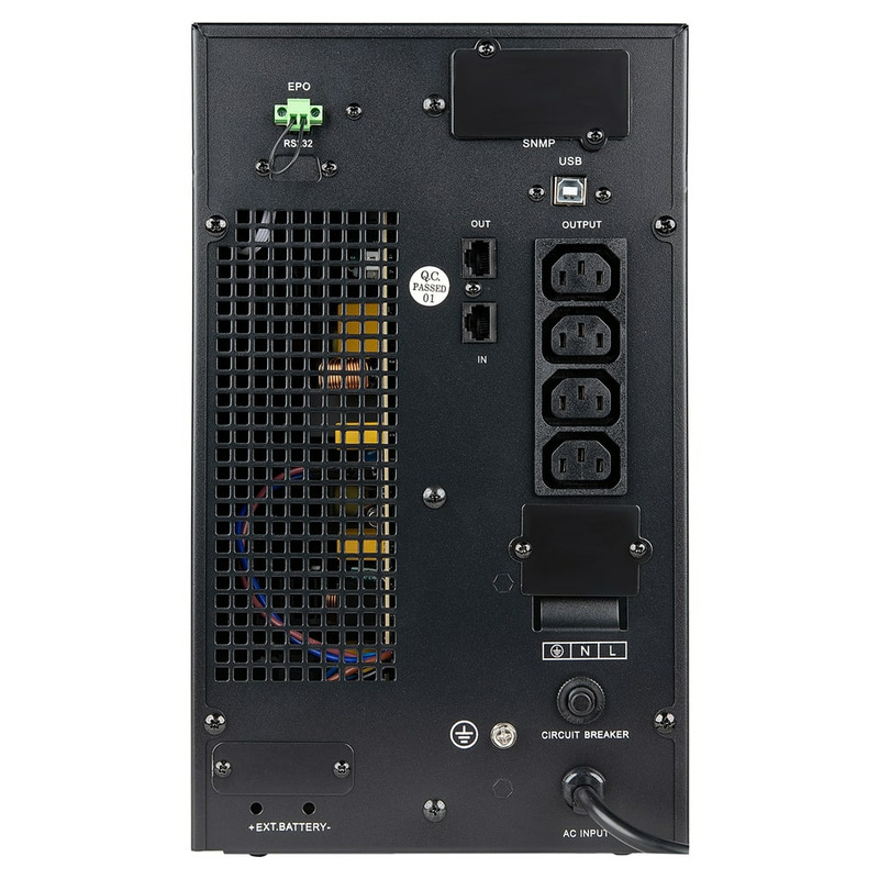 Подключение внешних аккумуляторных батарей позволяет увеличить время резервирования. Встроенный стабилизатор напряжения защищает оборудование от перепадов в электросети.