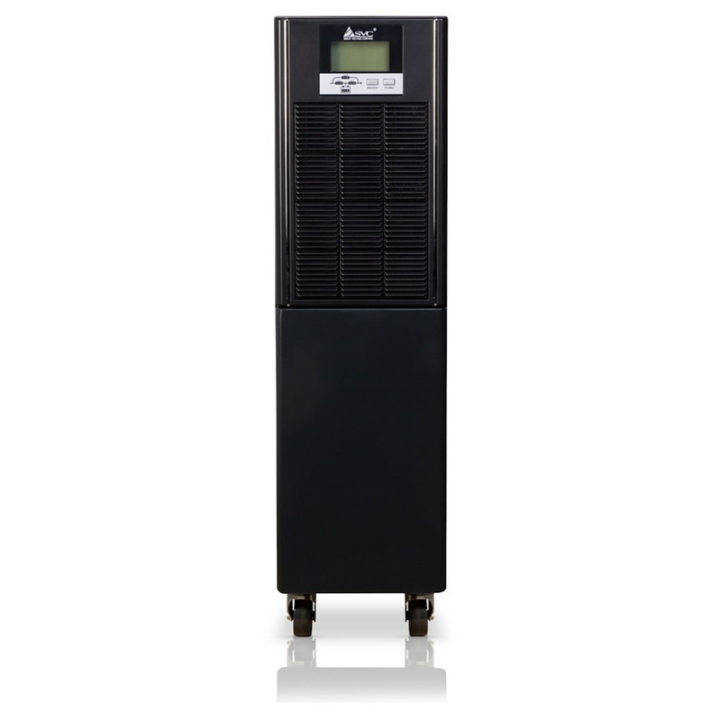 Онлайн ИБП SVC PTS-10KLS/A4 используется для защиты питания файловых серверов и АТС, а также любого другого оборудования, предъявляющего повышенные требования к качеству сетевого электропитания. Принцип работы состоит в двойном преобразовании (double conversion) тока. Сначала входное переменное напряжение преобразуется в постоянное, затем обратно в переменное напряжение с помощью обратного преобразователя (инвертора). При потере питания в городской сети время переключения в автономный режим равно нулю.
