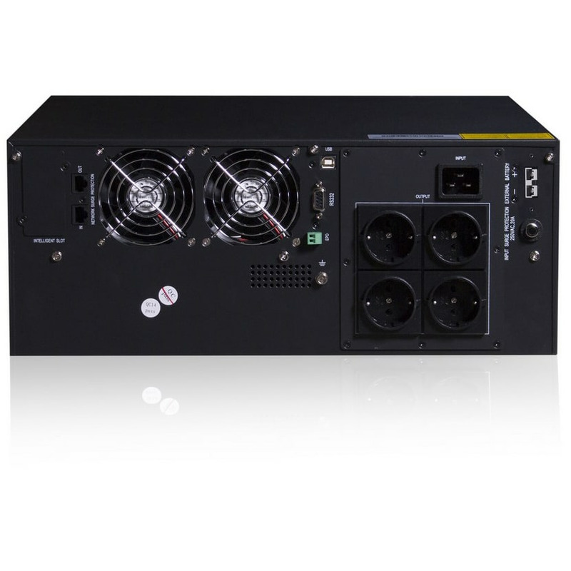 Принцип работы ИБП SVC RT-2KL-LCD/A2 состоит в двойном преобразовании (double conversion) тока. Сначала входное переменное напряжение преобразуется в постоянное, затем обратно в переменное напряжение с помощью обратного преобразователя (инвертора). При потере питания в городской сети время переключения в автономный режим равно нулю.