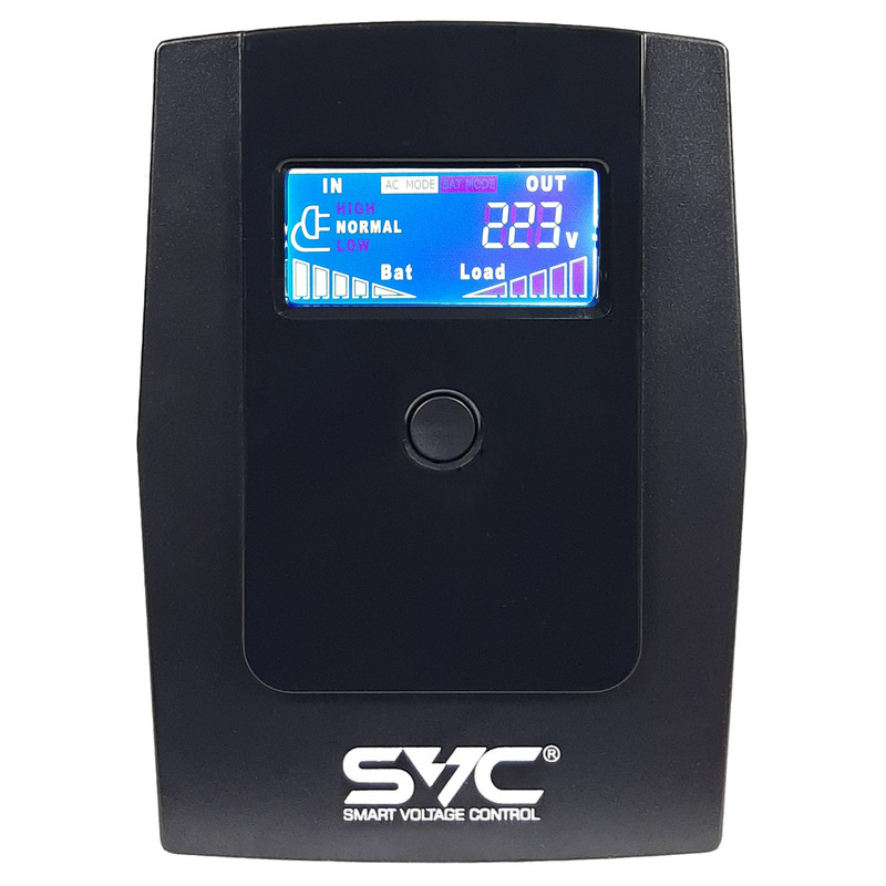 Линейно-Интерактивный ИБП SVC V-800-R-LCD - устройство, позволяющее подключенному оборудованию некоторое время работать от встроенных аккумуляторов при пропадании электрического тока или при выходе его параметров за допустимые нормы. Кроме того, оно способно корректировать параметры (напряжение, частоту) электропитания. Часто применяется для обеспечения бесперебойной работы компьютеров.