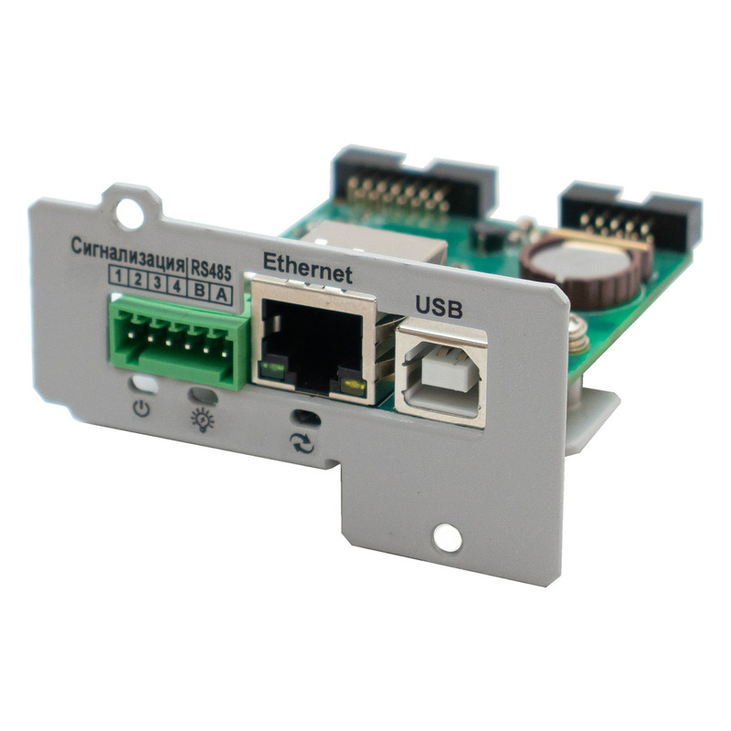 - Синий светодиод «Связь» – индуцирует статус интерфейса между контроллером ИБП/стабилизатора и платой расширения