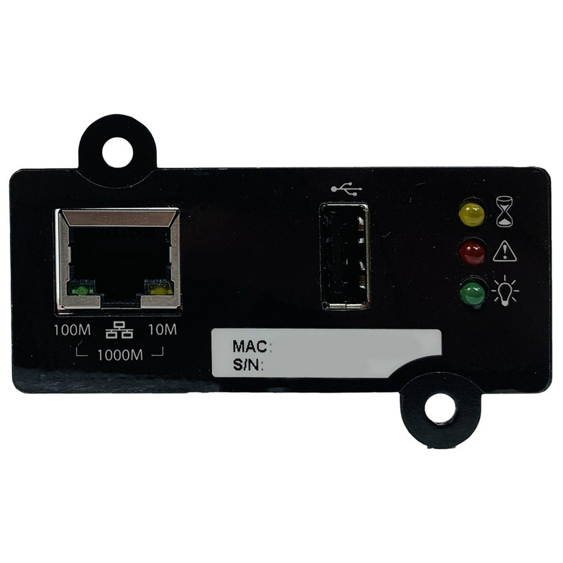 Карта SNMP предназначена для удаленного мониторинга и управления ИБП через локальную сеть или Интернет. Позволяет в режиме реального времени получать информацию о состоянии электросети и ИБП. Благодаря наличию встроенного http-сервера доступ к карте может осуществляться через любой веб-браузер.