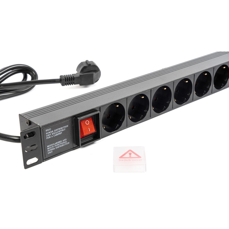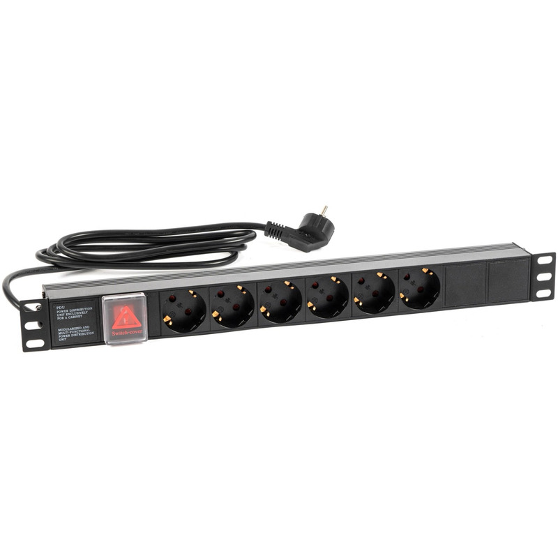 Блок розеток для установки в стойку 19" предназначен для подключения приемников (потребителей) электрического тока в телекоммуникационных шкафах и стойках с номинальным напряжением 220В и суммарным током нагрузки не более 16А.