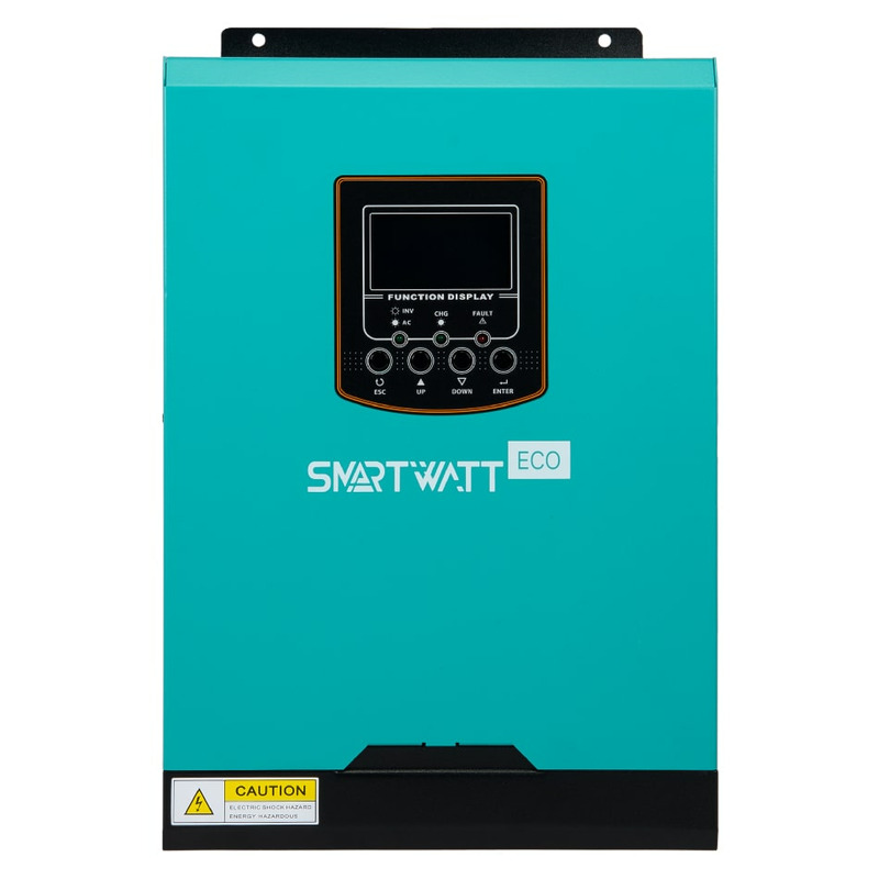 Сочетает в себе функционал инвертора и солнечного зарядного устройства с контроллером PWM. Имеет встроенную защиту от перегрузки и короткого замыкания. Позволяет настраивать приоритет заряда от солнца или сети и изменять другие настройки с помощью встроенного LCD-дисплея или мобильного приложения через подключение к опциональному устройству Wi-Fi Box.