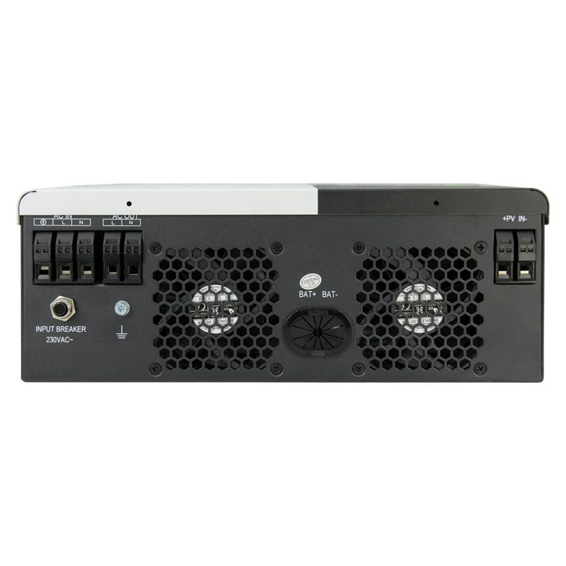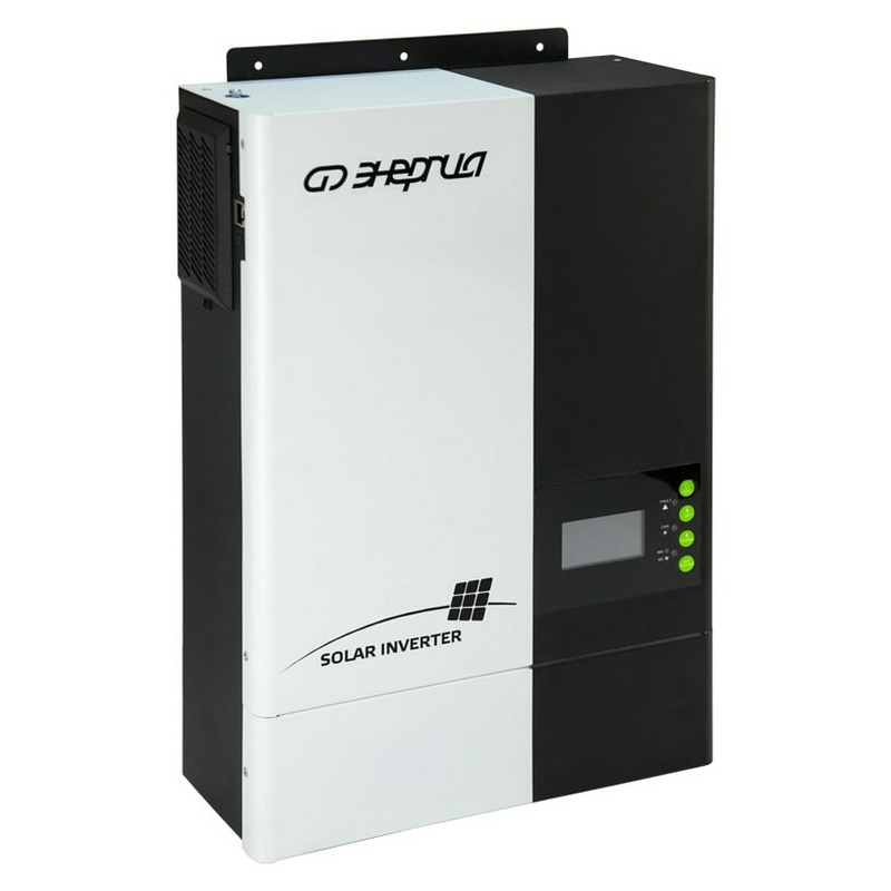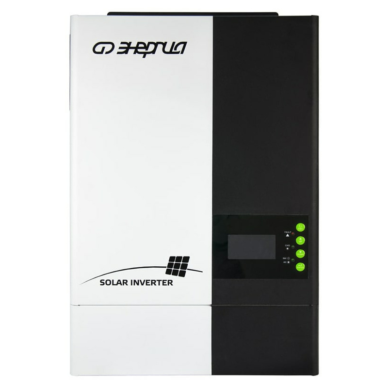 Cолнечный инвертор Энергия Стандарт 5500 GSM - это многофункциональный инвертор/зарядное устройство, сочетающее в себе функции инвертора, солнечного зарядного устройства MPPT 100A и зарядного устройства для аккумуляторов, обеспечивающее бесперебойное питание в портативном размере. Его комплексный ЖК-дисплей предлагает настраиваемые пользователем и легкодоступные кнопки управления, такие как ток зарядки аккумулятора, приоритет переменного/солнечного зарядного устройства и приемлемое входное напряжение в зависимости от различных приложений.