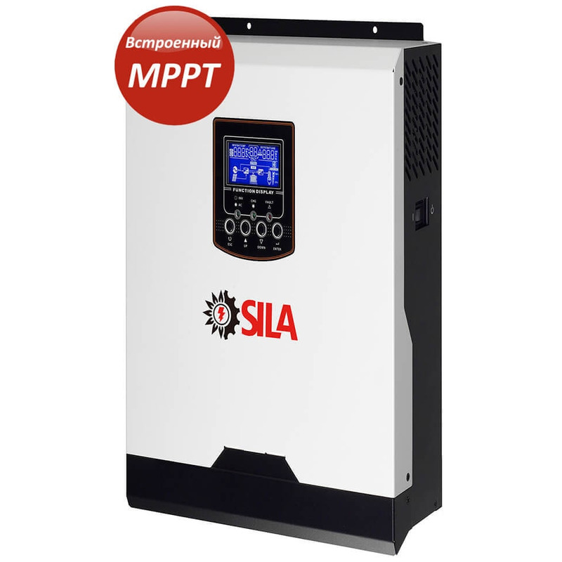 Гибридный солнечный инвертор SILA V 3000M Plus (PF 1.0) для дома и дачи - это обновленная версия инвертора SILA V 3000M Plus с коэффициентом преобразования 1.0 и мощностью 3 кВт. SILA V 3000M Plus (PF 1.0) - многофункциональный инвертор/зарядное устройство мощностью 3 кВт, в котором сочетаются функции инвертора, контроллера заряда аккумуляторов от солнечных батарей и зарядного устройства аккумуляторных батарей от сети 220 В для обеспечения бесперебойной подачи питания, с возможностью выбора приоритетов зарядки и нагрузки. Используется в небольших солнечных электростанциях и системах бесперебойного питания.