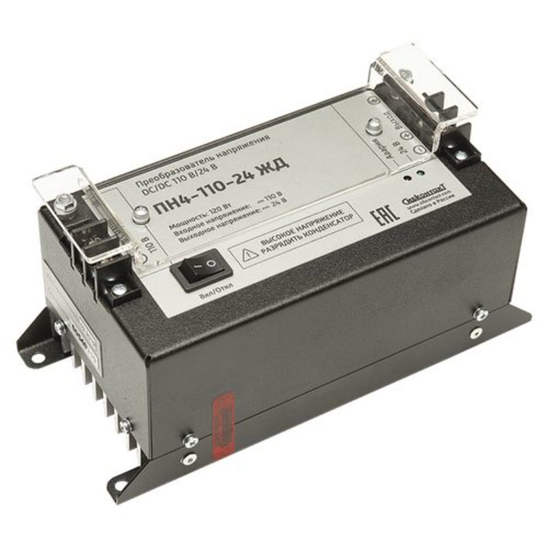 Конвертер ПН4-110-24 ЖД (DC-DC преобразователь постоянного напряжения 110В в 24В) предназначен для понижения постоянного напряжения.
