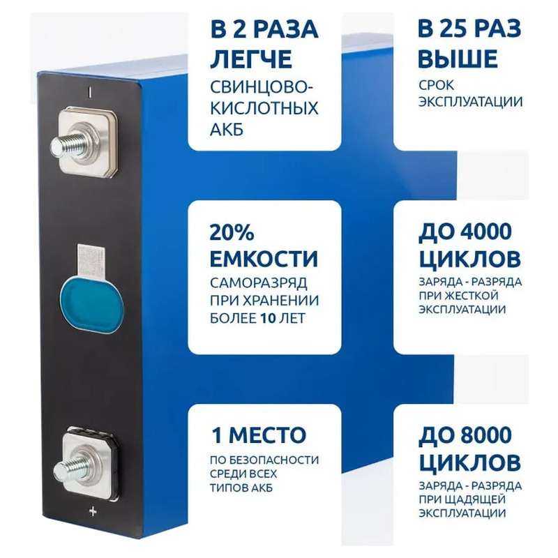 Литий-железо-фосфатный аккумулятор (LiFePO4 или LFP) – это современная технология перезаряжаемых аккумуляторов, которая стала популярной благодаря своей безопасности, длительному сроку службы и эффективности.