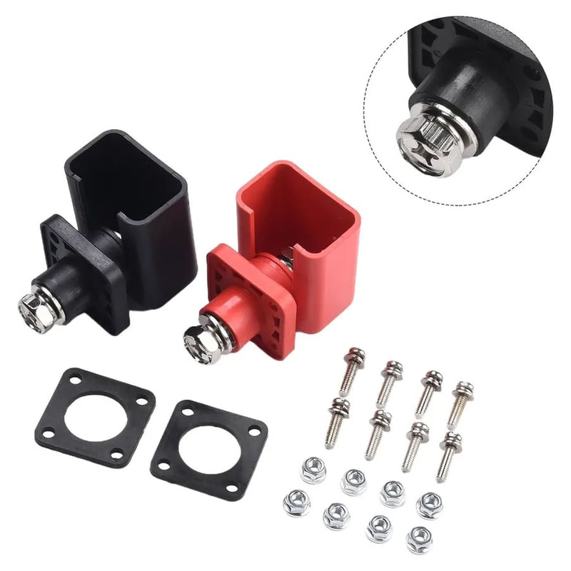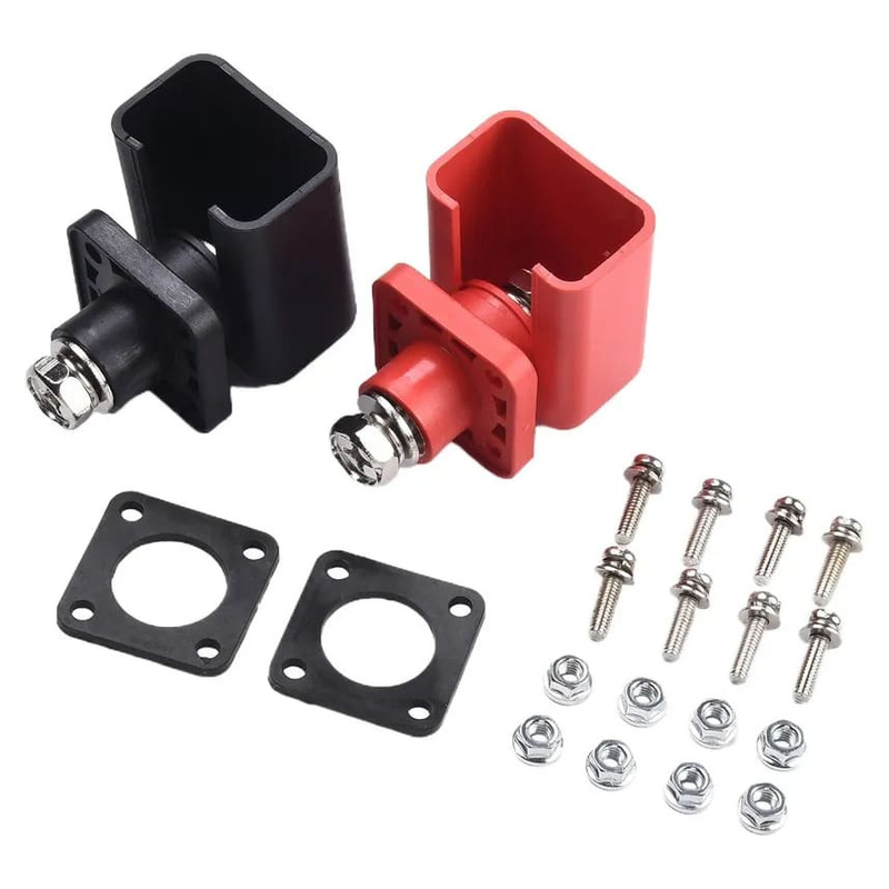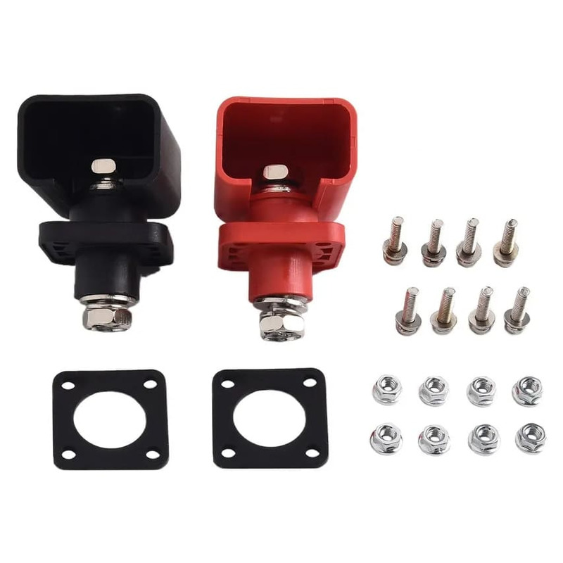Клеммы для LFP-аккумулятора 200А, 1000В (пара красн+черн) используются для соединения аккумуляторов с потребителями, а также для подключения зарядных устройств. Корпус разъема изготовлен из высокопрочного пластика, препятствует попаданию пыли и масел.