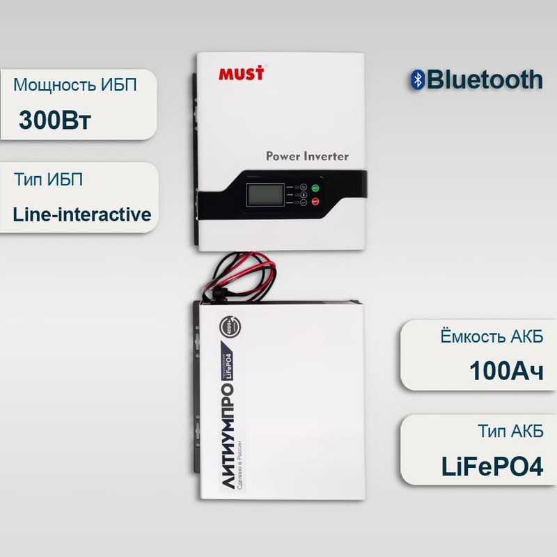 Комплект ИБП Must EP20-300 PRO + АКБ ЛИТИУМПРО LFP 12-100TW-100
