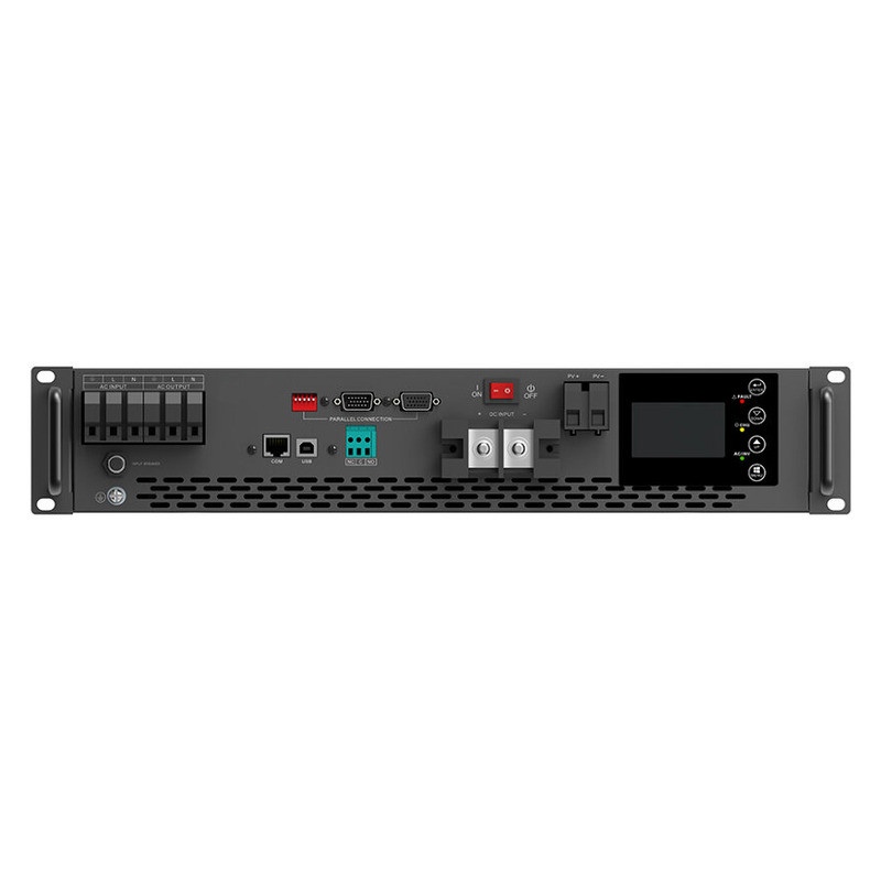 Hiden Control HS25-5048RM - гибридный однофазный линейно-интерактивный источник бесперебойного питания, подключение внешних АКБ. Данная модель является полным аналогом модели HS25-5048 в серверном исполнении и со встроенной платой параллельной работы, но без солнечного контроллера.