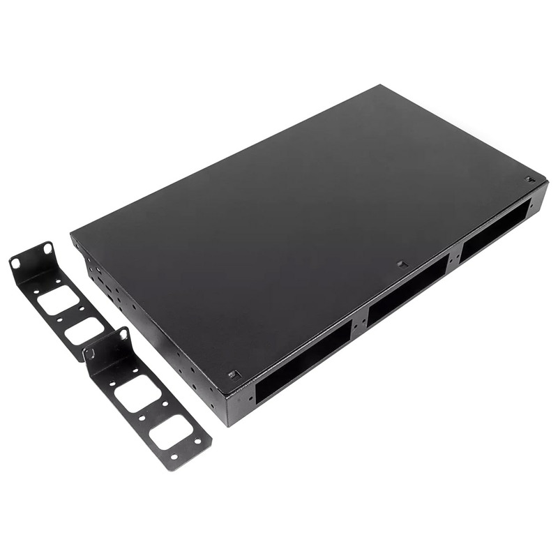 Корпус выполнен из металла, имеет верхнюю съемную крышку, зафиксированную винтами. Кабельные вводы находятся в задней части панели, стенки имеют развитую перфорацию для фиксации кабеля стяжками, а также два зажима для крепления кевлара. Внутри корпуса установлена сплайс-кассета. В стандартную комплектацию входят маркеры кабеля, таблица кроссировки волокон, стяжки и панели для установки восьми адаптеров  (ST - 3 шт.,  SC - 3 шт., SC Duplex - 2 шт., фальшпанели - 2шт.).