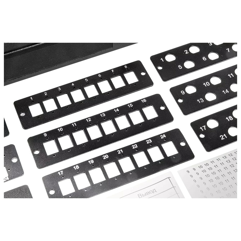Характеристики Кросс оптический ЦМО 19" с комплектом вставок (Патч-панель 19"), цвет черный БОН-М2-1-19-9005