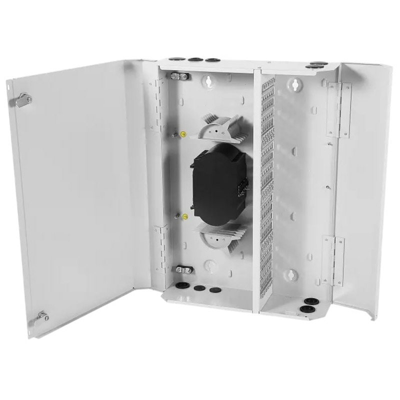 Корпус выполнен из металла, имеет два отсека - монтажный и кроссировочный. Отсеки разделенные перегородкой со съемными панелями для установки оптических адаптеров. Бокс блокируется дверью с точечным замком, предусмотрена возможность установки пломбы.