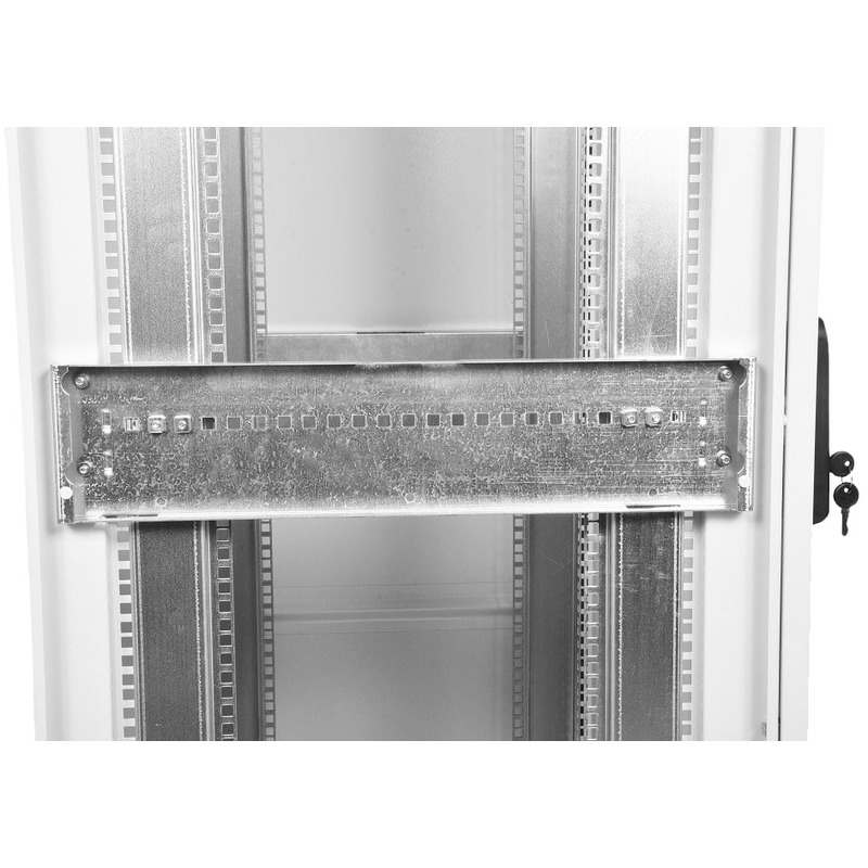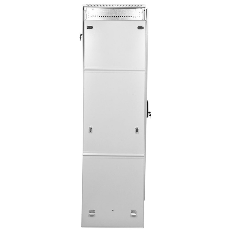 Доступ для монтажа, коммутации и обслуживания оборудования возможен с четырех сторон, через боковые легкосъемные стенки, переднюю и заднюю двери. Шкаф имеет 4 оцинкованные вертикальные направляющие, регулируемые по глубине.