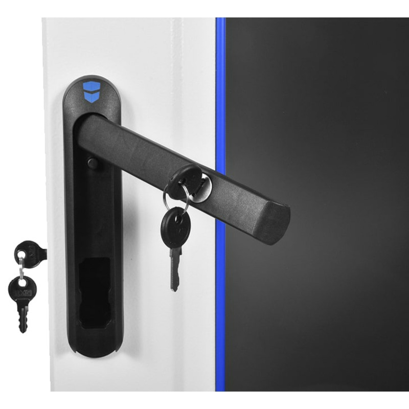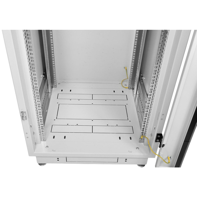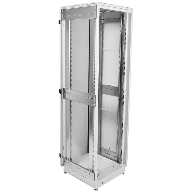 Доступ для монтажа, коммутации и обслуживания оборудования возможен с четырех сторон, через боковые легкосъемные стенки, переднюю и заднюю двери. Шкаф имеет 4 оцинкованные вертикальные направляющие, регулируемые по глубине.