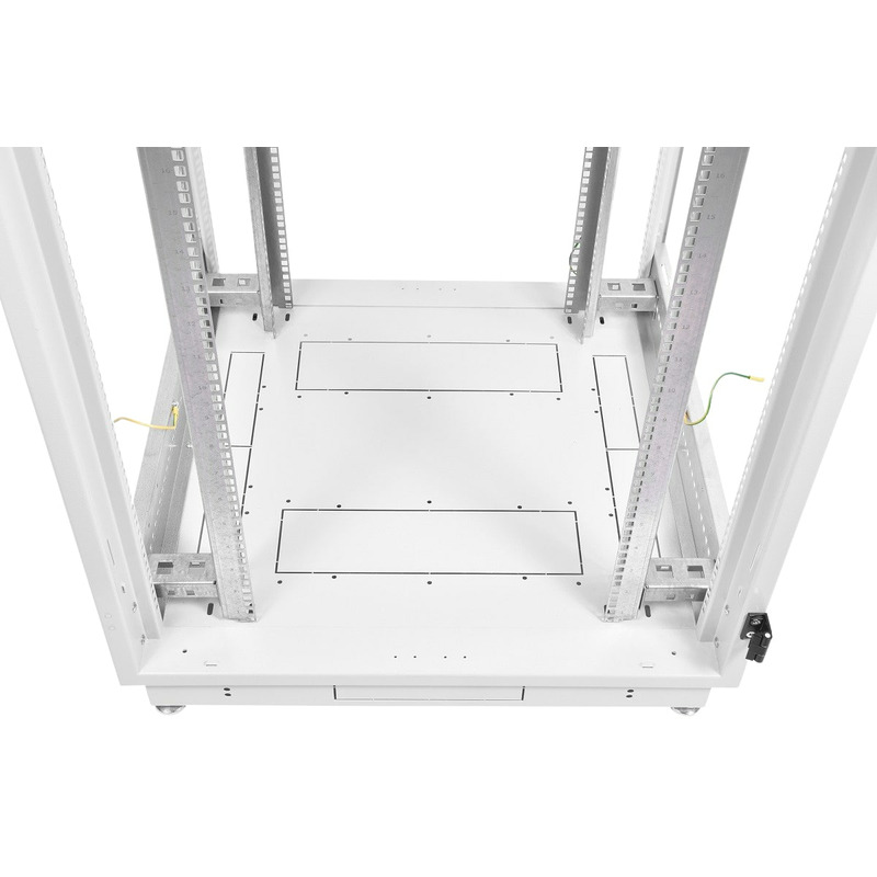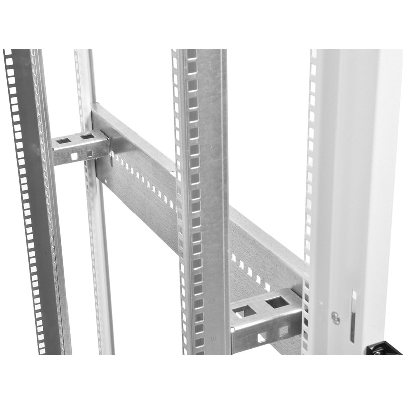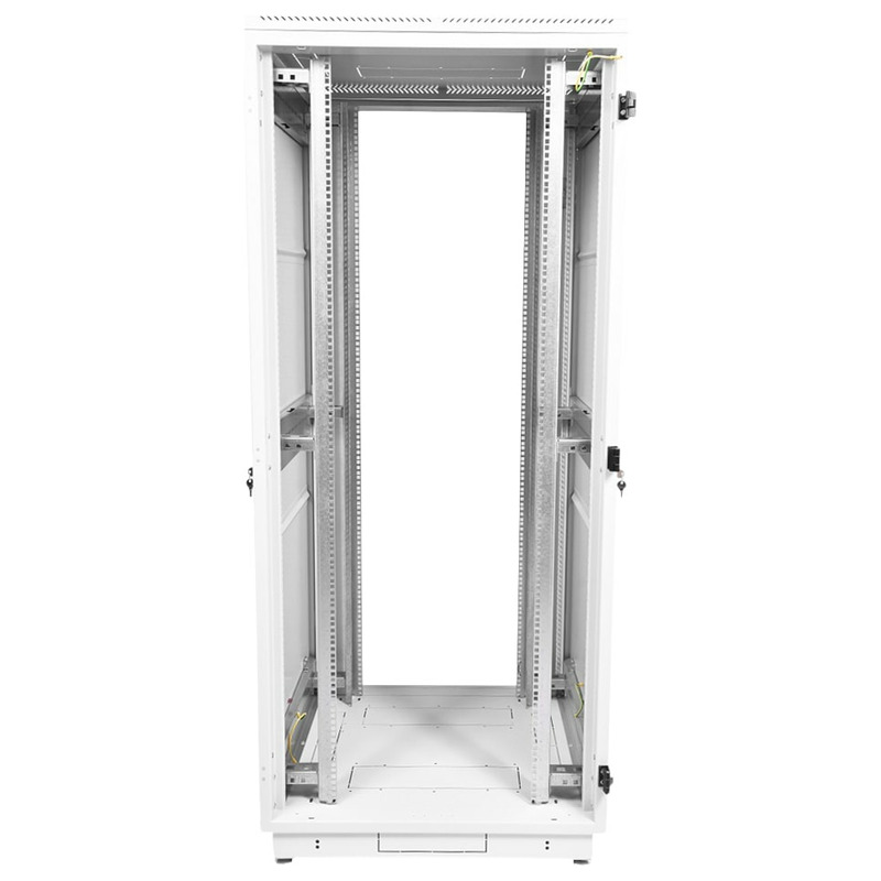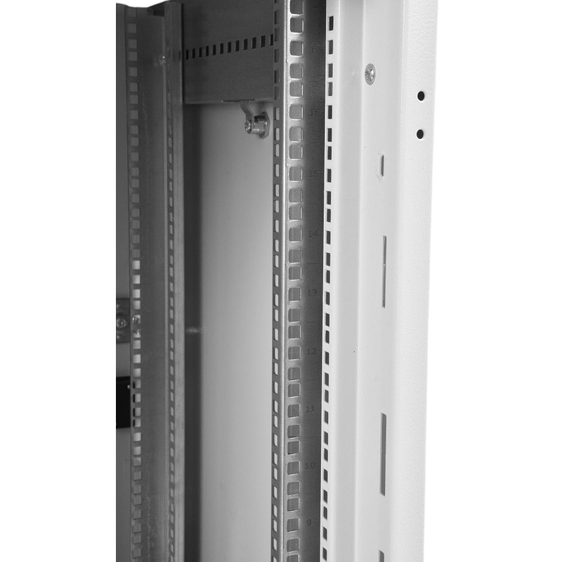 Доступ для монтажа, коммутации и обслуживания оборудования возможен с четырех сторон, через боковые легкосъемные стенки, переднюю и заднюю двери. Шкаф имеет 4 оцинкованные вертикальные направляющие, регулируемые по глубине.