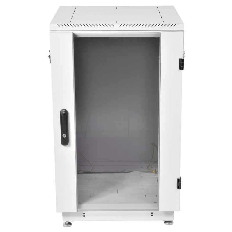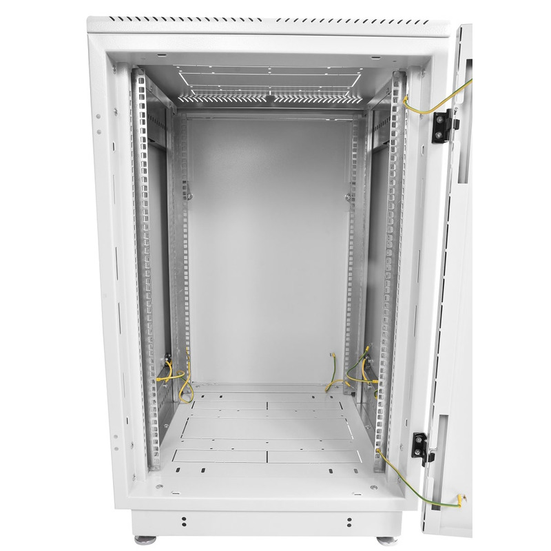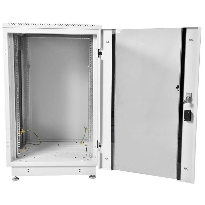 Доступ для монтажа, коммутации и обслуживания оборудования возможен с четырех сторон, через боковые легкосъемные стенки, переднюю и заднюю двери. Шкаф имеет 4 оцинкованные вертикальные направляющие, регулируемые по глубине.