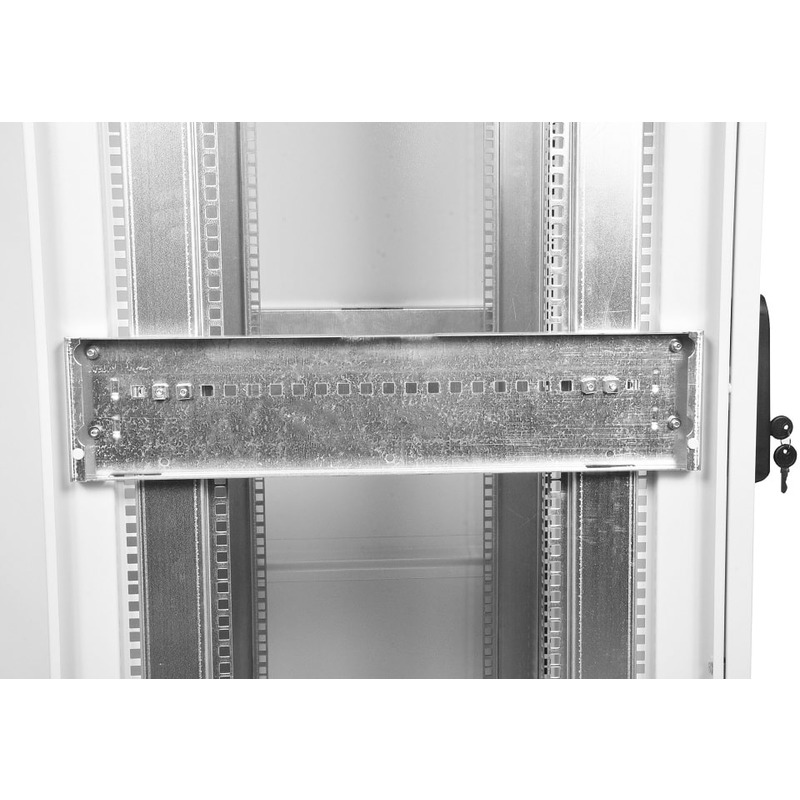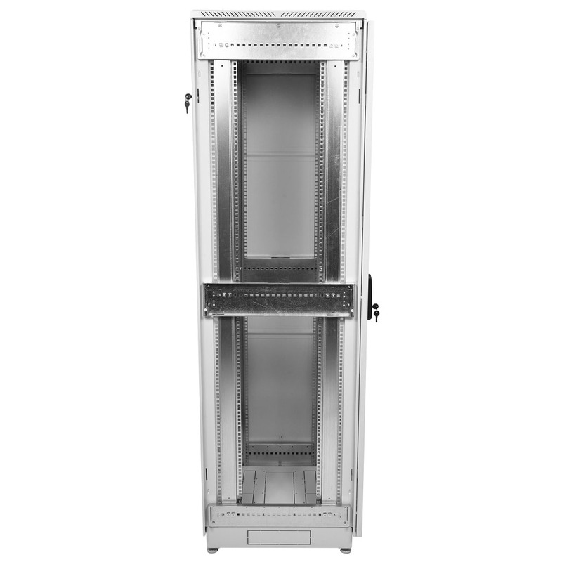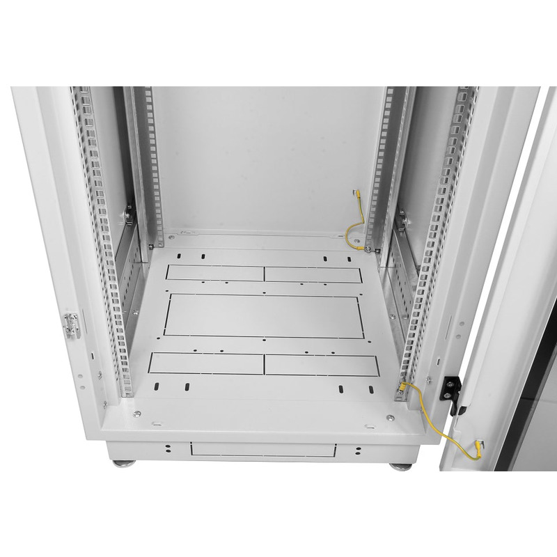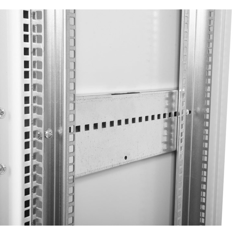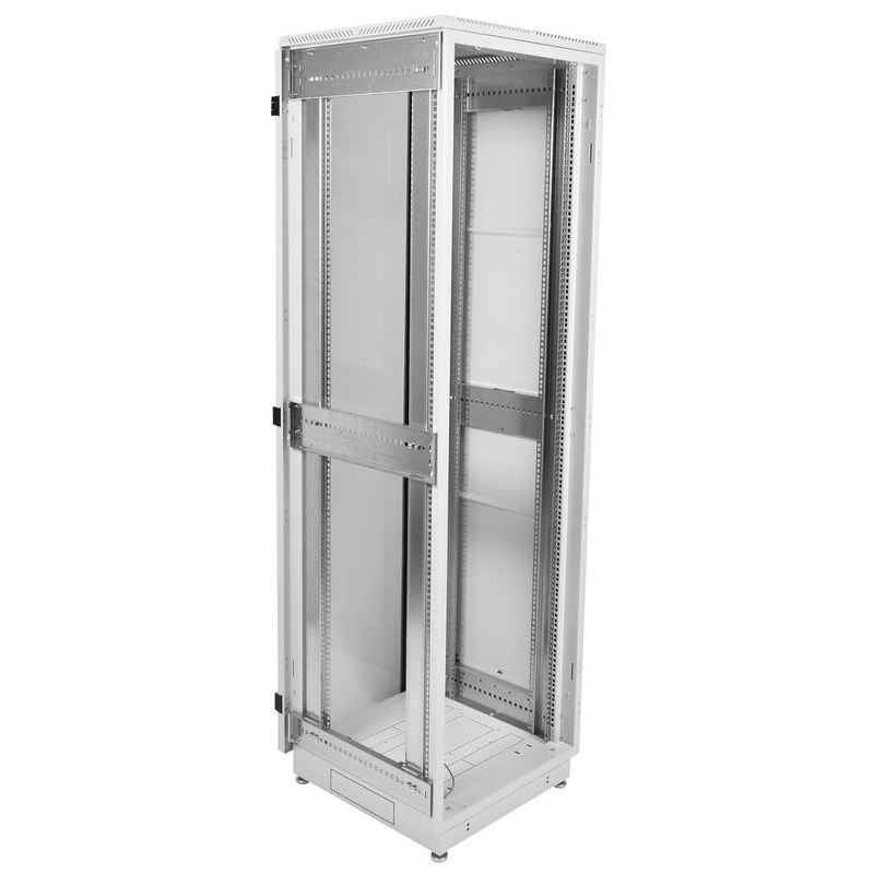 Доступ для монтажа, коммутации и обслуживания оборудования возможен с четырех сторон, через боковые легкосъемные стенки, переднюю и заднюю двери. Шкаф имеет 4 оцинкованные вертикальные направляющие, регулируемые по глубине.