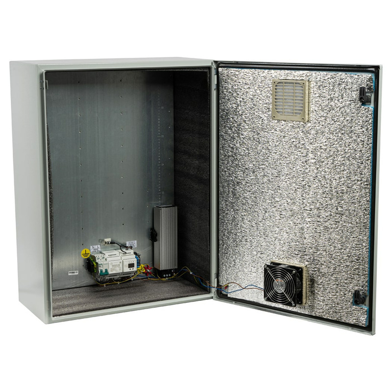 - Охлаждение внутреннего пространства шкафа за счет применения вентиляторной системы охлаждения