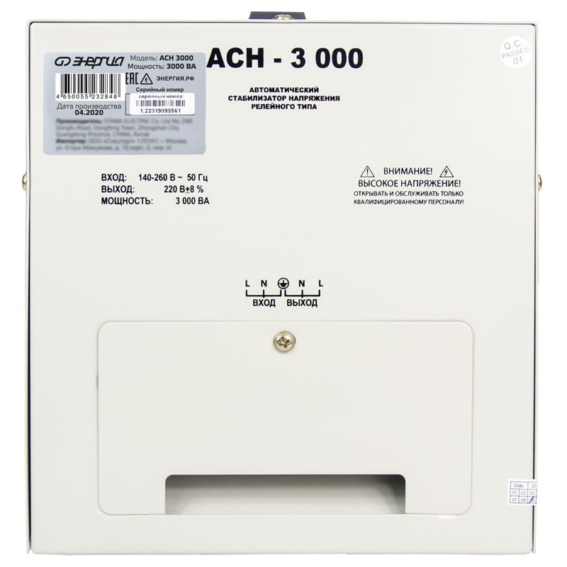 Характеристики Стабилизатор напряжения Энергия АСН-3000