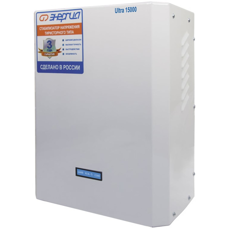 Все это позволяет отнести тиристорные стабилизаторы Энергия ULTRA к электрооборудованию высшей категории качества и надежности.