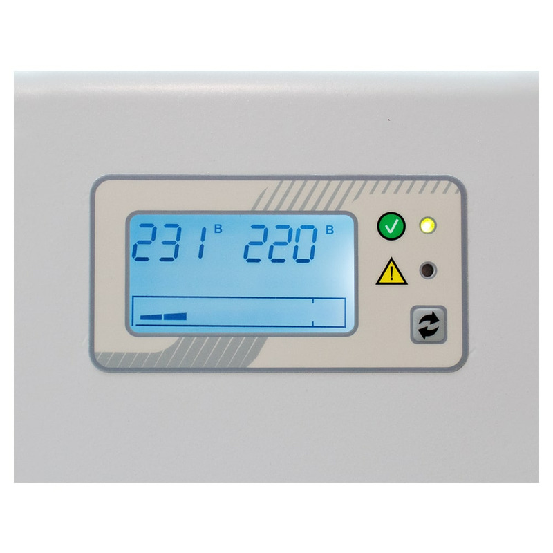 • Идеальное синусоидальное выходное напряжение с высокой точностью стабилизации (±2%) в широком диапазоне колебаний и скачков входного напряжения (90 В – 310 В)