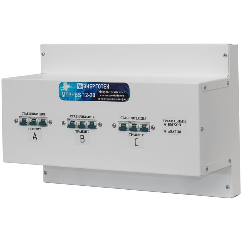 Модуль трехфазный внешнего байпаса и синхронизации фаз БКС от компании Энерготех предназначен для объединения трех любых однофазных стабилизаторов напряжения для работы в трехфазном режиме. Модуль БКС может быть использован без стабилизаторов напряжения, для организации защиты трехфазных нагрузок от неполнофазного режима.
