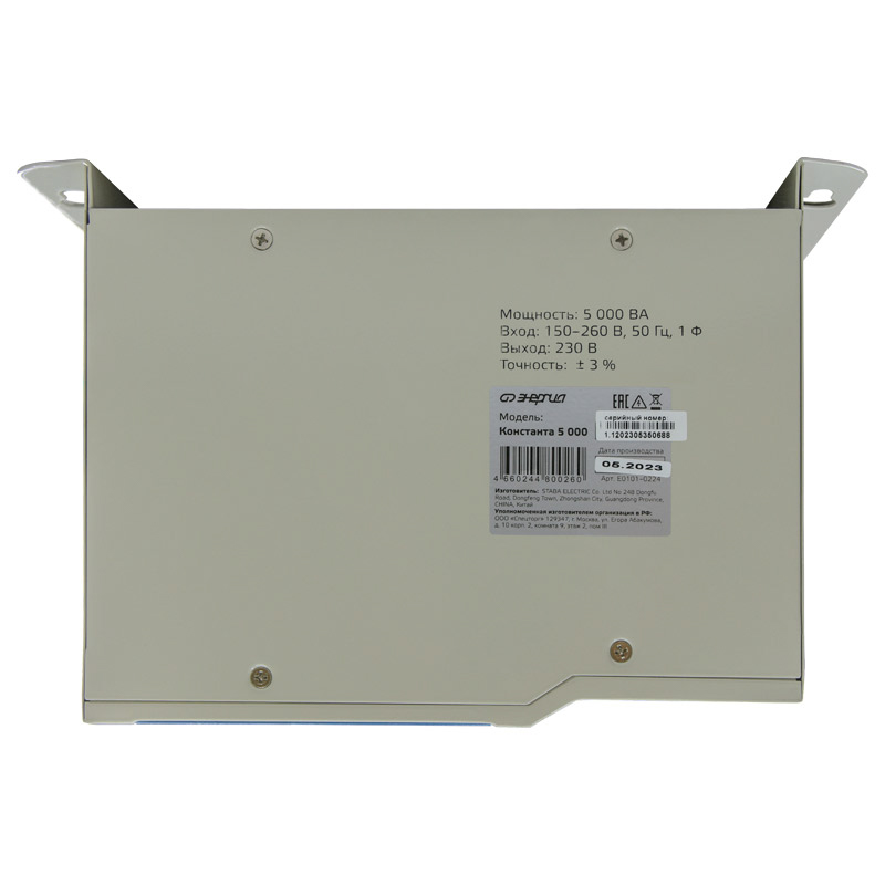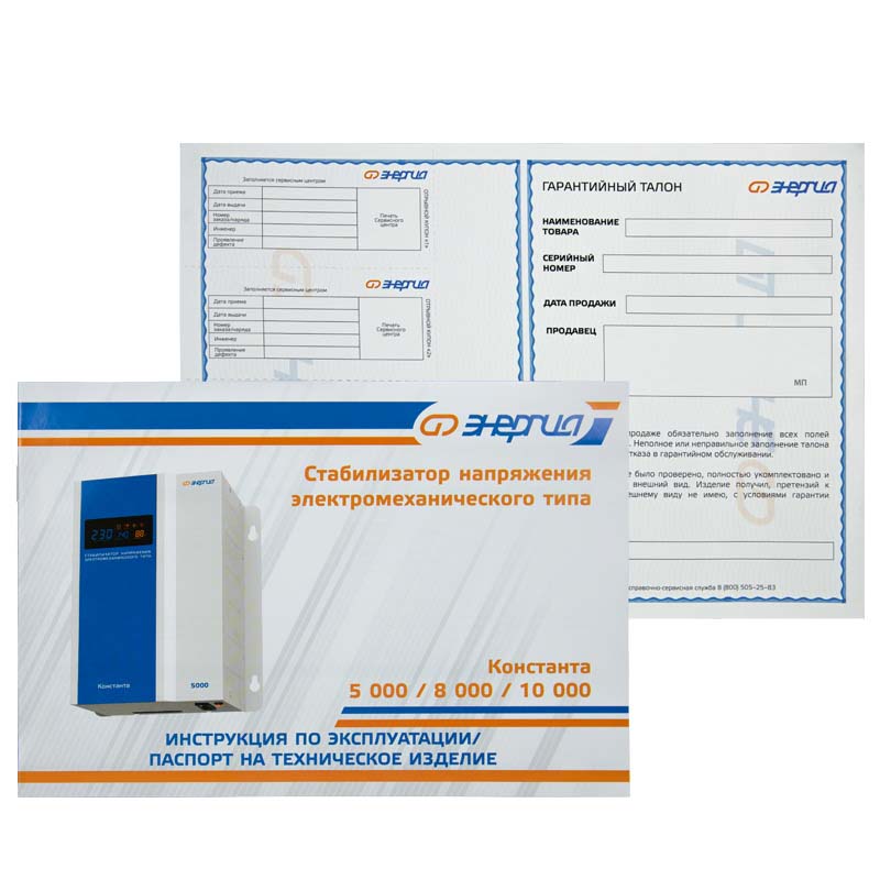 Электромеханический стабилизатор напряжения Энергия Константа предназначен для стабилизации напряжения в бытовой сети электроснабжения. Высокое качество сборки является гарантией длительной и безотказной работы стабилизатора. Выходное напряжение стабилизатора поддерживается в диапазоне 230 В ± 3 %, что соответствует требованиям на предельно допустимые значения отклонения напряжения электропитания по ГОСТ 13109–97 «Нормы качества электрической энергии в системах электроснабжения».