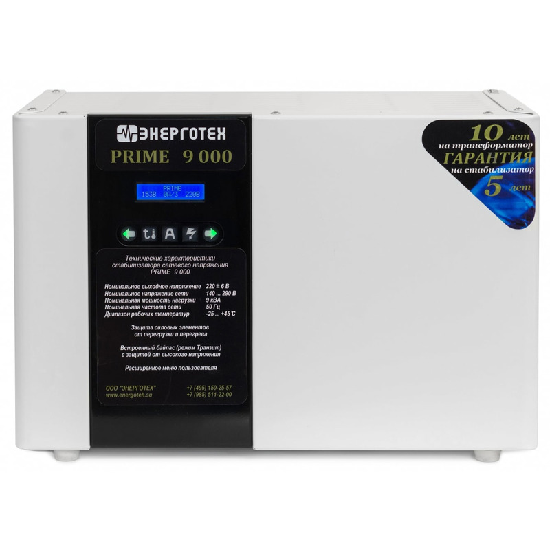 Характеристики Стабилизатор напряжения Энерготех PRIME 9000