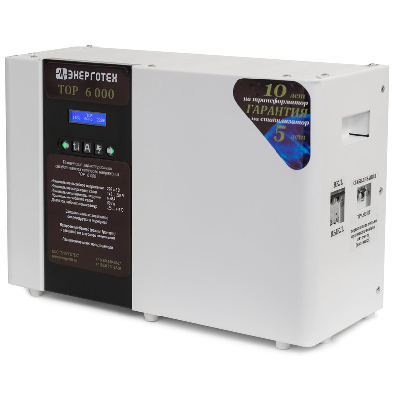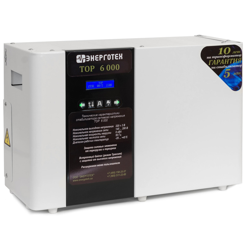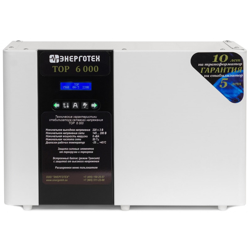 Характеристики Стабилизатор напряжения Энерготех TOP 6000