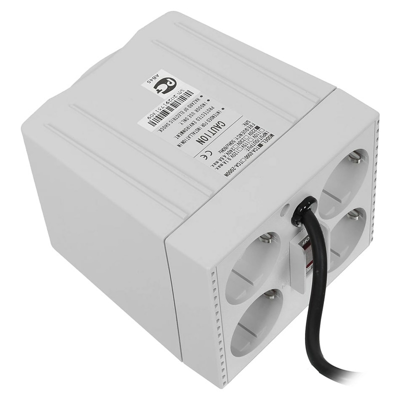 Бытовые стабилизаторы напряжения серии ТСА обеспечивают надежную работу компьютерной и прочей электронной техники при понижении или повышении напряжения электросети там, где не требуется батарейная поддержка. Компактный корпус стабилизатора вмещает 4 выходные евророзетки с заземлением (4 x CEE 7/4) на задней панели с защитой от проникновения посторонних предметов и надежной фиксацией вилок любых типов. Для защиты от перегрузки и короткого замыкания на выходе предусмотрен автоматический выключатель. После устранения причины проблемы выключатель легко возвращается в исходное состояние одним нажатием.