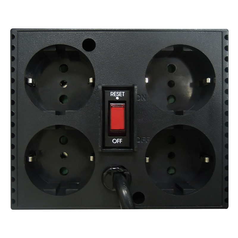 Бытовые стабилизаторы напряжения серии ТСА обеспечивают надежную работу компьютерной и прочей электронной техники при понижении или повышении напряжения электросети там, где не требуется батарейная поддержка. Компактный корпус стабилизатора вмещает 4 выходные евророзетки с заземлением (4 x CEE 7/4) на задней панели с защитой от проникновения посторонних предметов и надежной фиксацией вилок любых типов. Для защиты от перегрузки и короткого замыкания на выходе предусмотрен автоматический выключатель. После устранения причины проблемы выключатель легко возвращается в исходное состояние одним нажатием.