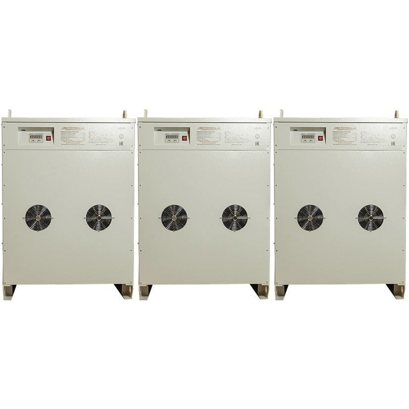 Трехфазный стабилизатор напряжения переменного тока Lider PS150SQ-I-40 предназначен для качественного электропитания переменным током синусоидальной формы различных потребителей в условиях больших по значению и длительности отклонений напряжения электрической сети от номинального, для защиты от высокочастотных помех и импульсных перенапряжений. Состоит из трех одинаковых однофазных стабилизаторов PS50000SQ-I. Советуем выбирать стабилизатор напряжения с запасом по мощности не менее 30% от максимально возможной нагрузки.