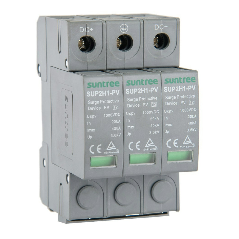 Устройство защиты от импульсных перенапряжений постоянного тока 2-го типа SUP2H1-PV выполнено на базе варистора и предназначено для защиты электрооборудования в фотоэлектрических сетях до 1000 В. УЗИП устанавливается параллельно сети постоянного тока. Рекомендуется устанавливать его на обоих концах линии питания постоянного тока (со стороны солнечной панели и со стороны инвертора), особенно если линия проложена снаружи и имеет большую длину (свыше 15 метров). Высокоэнергетические варисторы оснащены специальными тепловыми разъединителями и индикаторами срабатывания. Также в комплект поставки УЗИП включен сухой контакт для оповещения о срабатывании системы автоматизированного контроля.