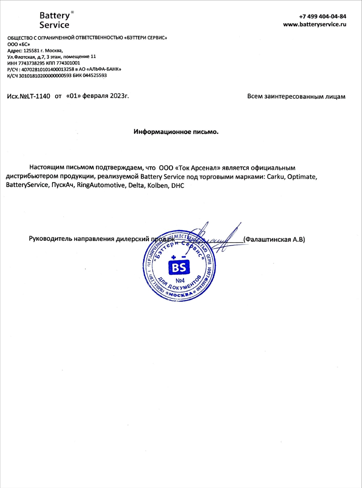 Решение: В октябре 2025г. Компания Ток Арсенал выиграла тендер на поставку аккумуляторов ЕЦПКиО им. В.В. Маяковского. Обязательства были выполнены качественно. Заказчик остался доволен.