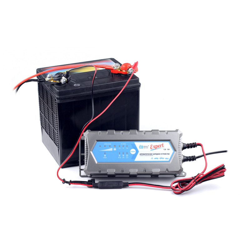 Зарядное устройство Battery Service Expert — настоящее устройство для профессионалов. Выбор тока заряда от 2,5А до 10А покрывает практически все доступные емкости мотоциклетных, а также автомобильных и промышленных батарей до 240Ач. Рекомендуемый режим 6А для самых распространенных батарей емкостью 60-65Ач.