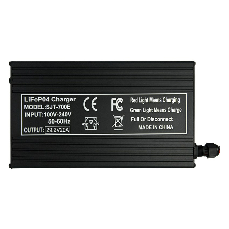 Зарядное устройство предназначено для зарядки литий-железо-фосфатных LiFePO4 аккумуляторов напряжением 29.2В, ток заряда до 20А. Оснащено вилкой для подключения к сети. Корпус выполнен из пластика. Имеет защиту от КЗ и перегрузки с автовосстановлением.