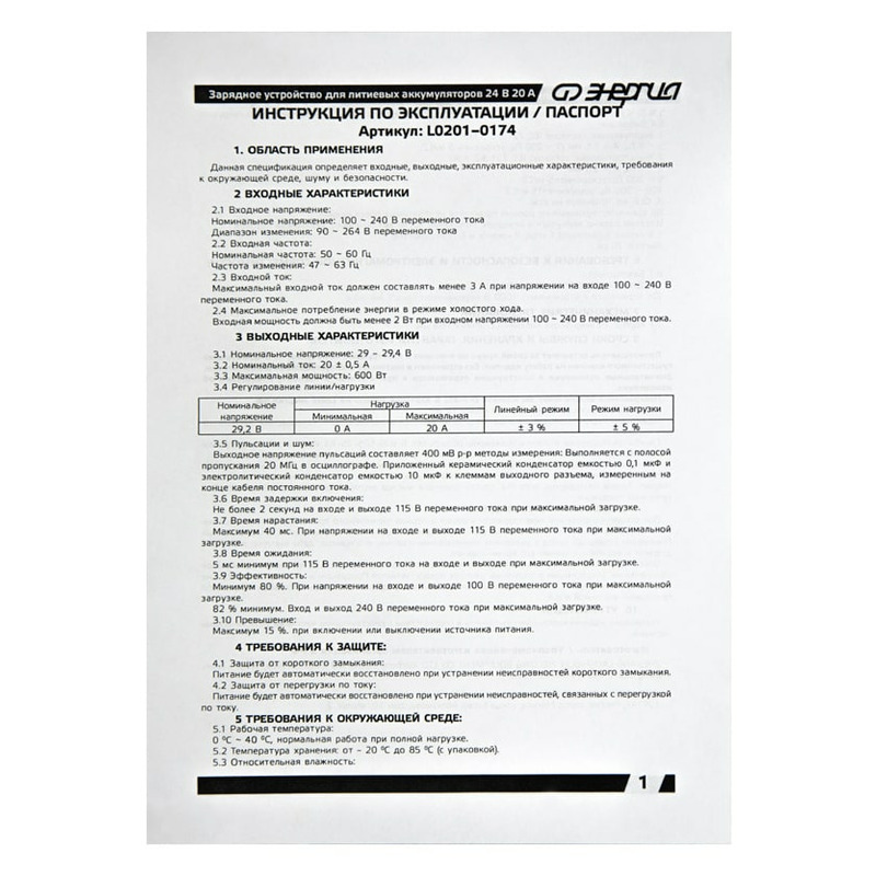 - Зарядное устройство для литиевых аккумуляторов 29,2В, 20А - 1 шт.